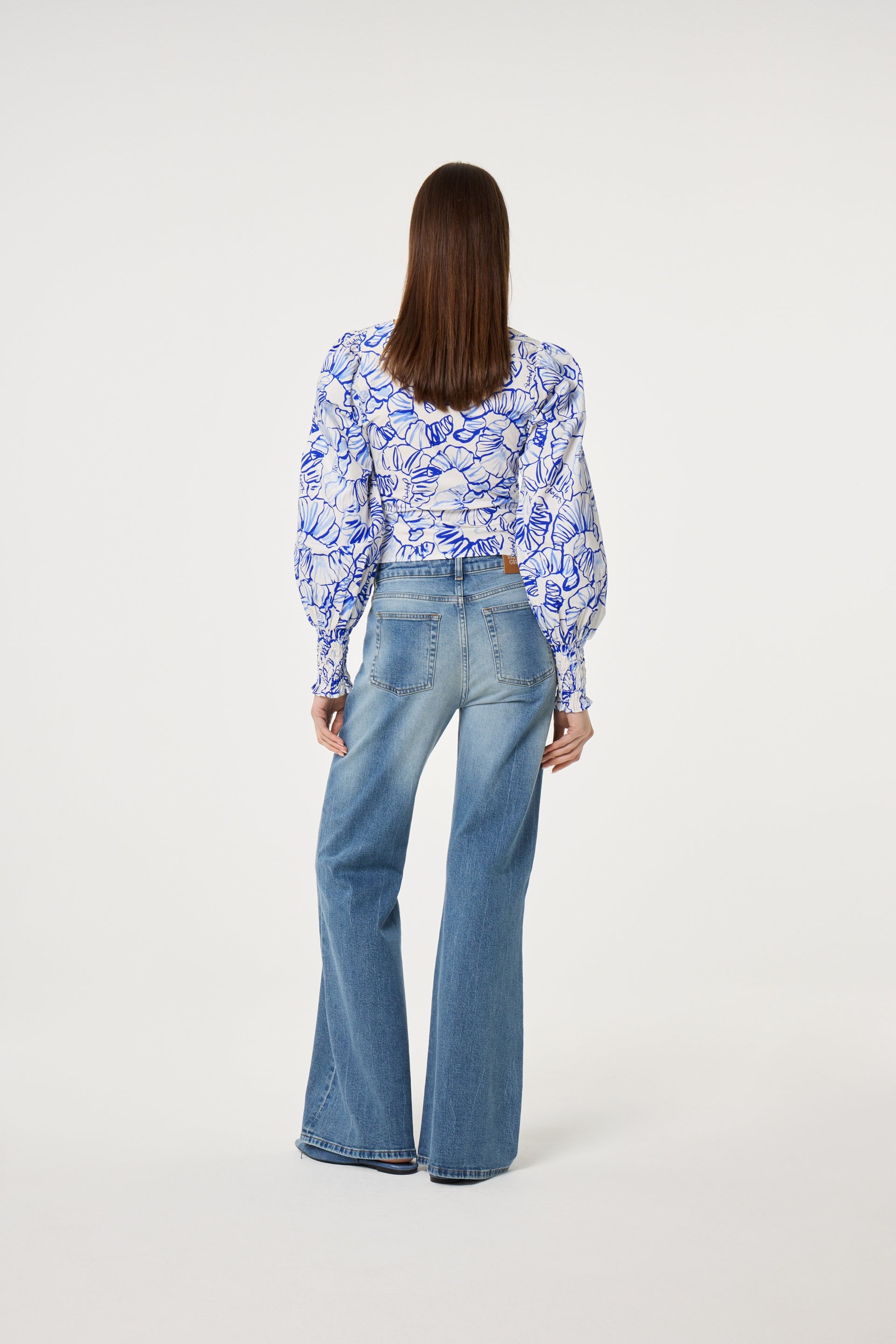 This slim-fit top features a navy pattern, adding a playful pop of color to any outfit. Flattering and versatile, it’s perfect for everyday wear or layering under jackets and blazers.